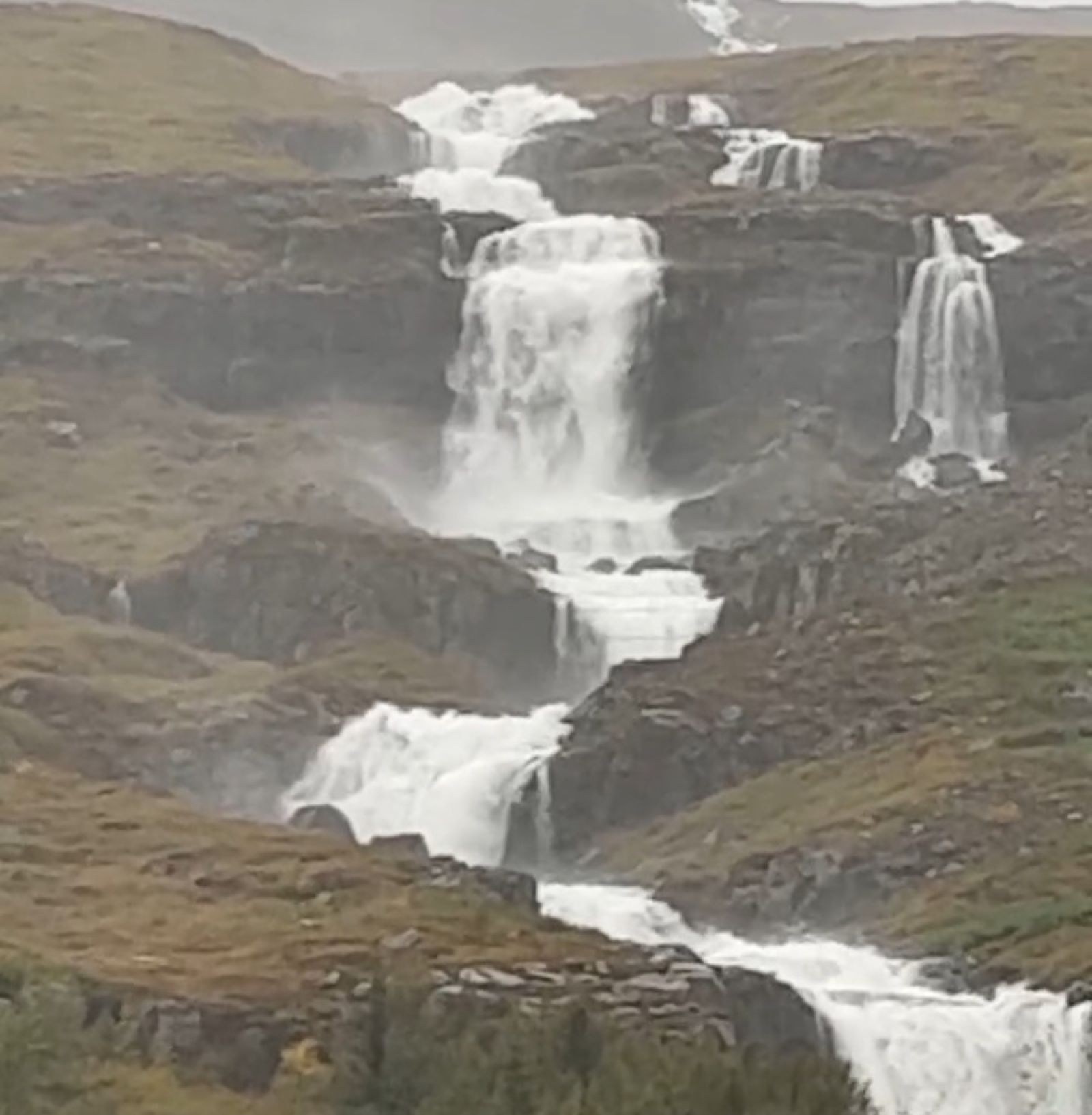 Bleiksárfossar æði voldugir snemma í morgun þegar Sævar átti leið þar hjá og tók þessa mynd. Árnar eru að mestu tærar við Eskifjörð að hans sögn.