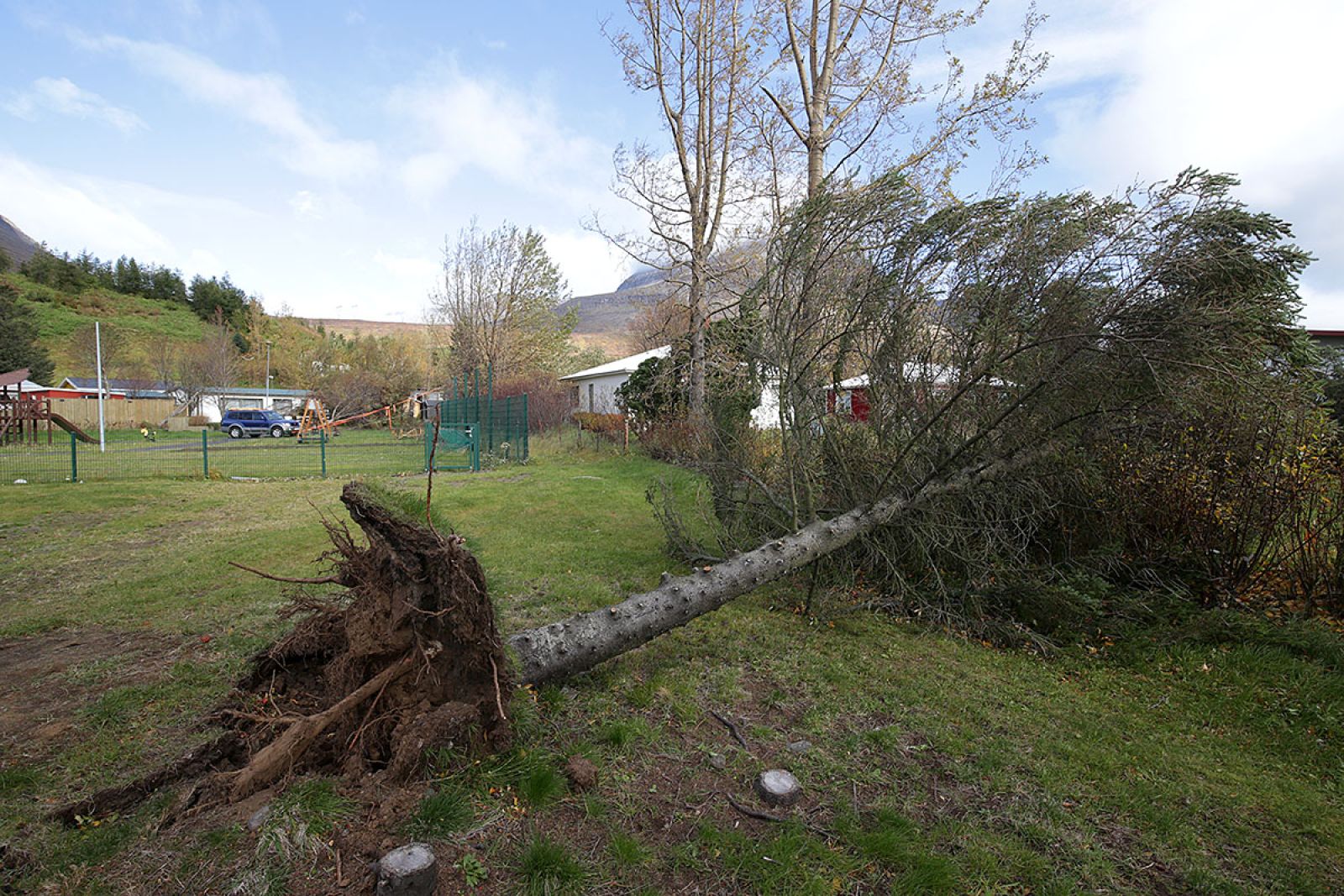 Björgunarsveitin Hérað á Egilsstöðum var kölluð út upp úr klukkan tíu því þakplötur voru að fjúka. Þar mældist 35 m/s hviða sem er óvenju mikið.