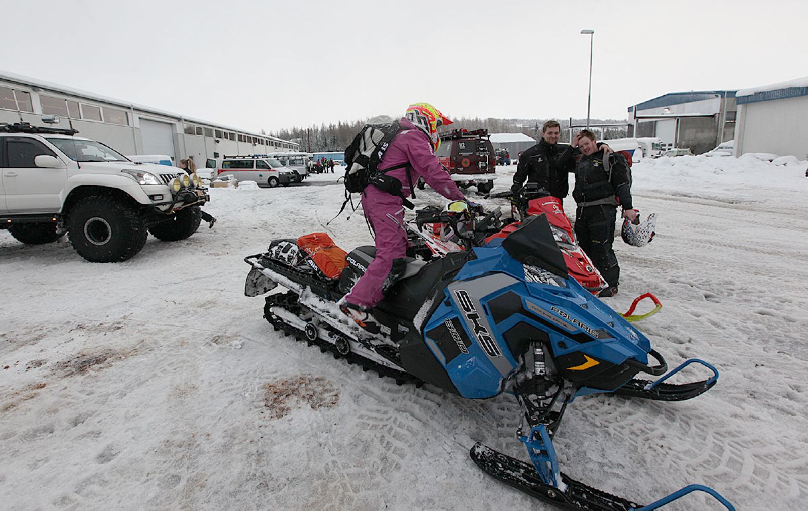 Aðstæður, bæði uppi á heiðum sem og jöklinum sjálfum, eru erfiðar: snjókoma, hvasst og blint. Ferðin sækist því hægt en helst er að snjóbílarnir nái árangri í vondu veðri þótt hægt fari.