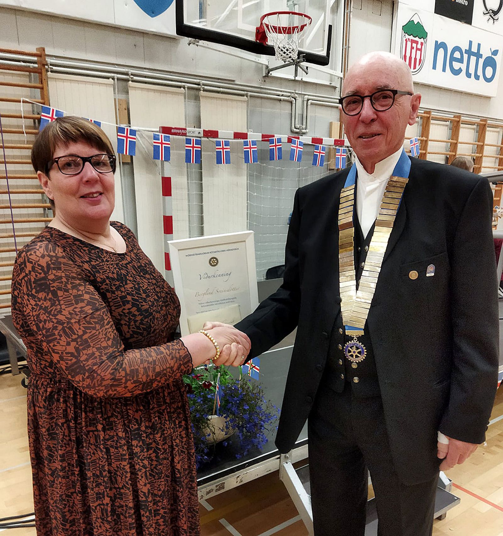 Sveinn Jónsson, forseti klúbbsins, afhendir Berglindi viðurkenninguna. Mynd: Rótarýklúbbur Héraðsbúa