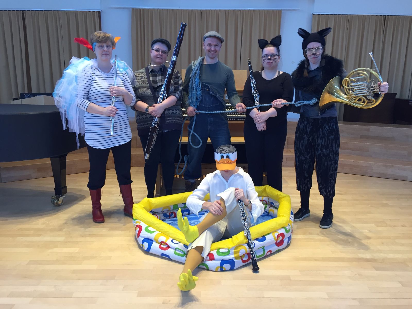 „Uppsetningin er afar vel heppnuð hjá NA5 kvintettinum, en með einföldum búningum og leikrænni tjáningu hjálpa þau börnunum að lifa sig algerlega inn í söguna og tengja hljóðfærin við dýrin. Ég hef sjálf fylgst með þessum sýningum og börin eru alveg dolfallin, enda bæði töfrandi verk og flutningur,“ segir Karna.