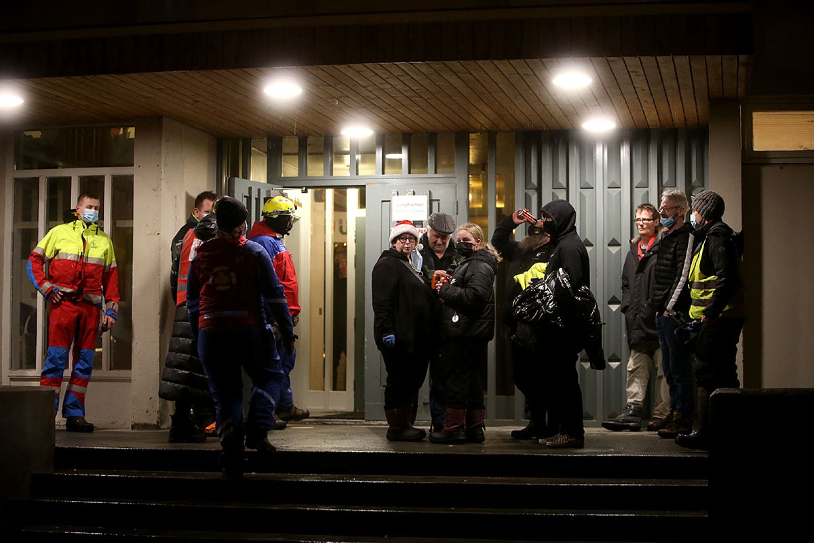 Björgunarsveitarmenn komu síðan að málum með fylgjast með öryggi þeirra sem fóru inn á skriðusvæðið eða ferja starfsfólk út fyrir skriðuna.