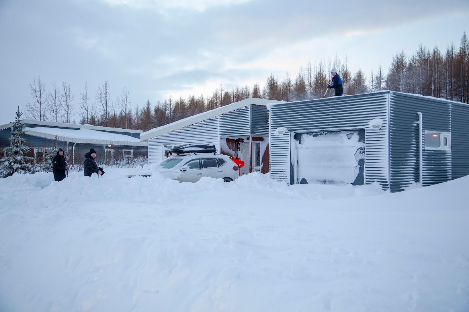 Austurfrétt hefur fregnir af bæjarbúum sem þurftu að eyða klukkustundum í að gera þokkalega fært að húsum sínum í gær eftir snjókomuna á jóladag. Sveinbjörn segir að það sé „allt á kafi í bænum.“