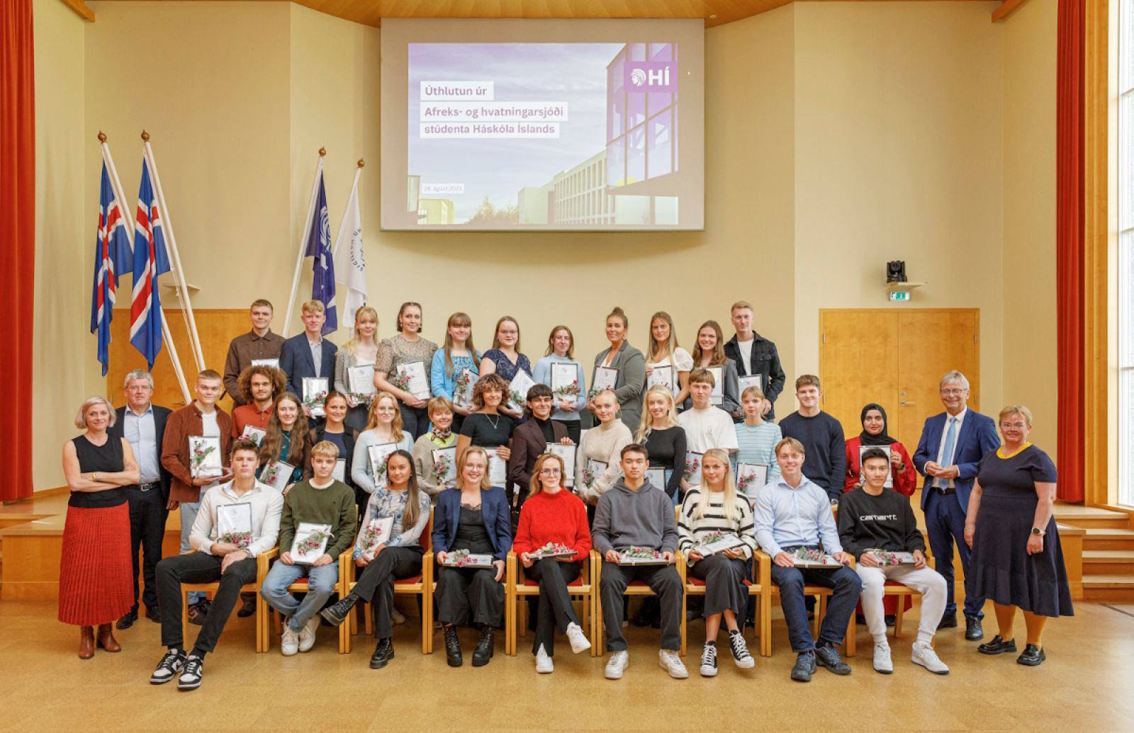 Styrkirnir voru afhentir við hátíðlega athöfn í háskólanum í gær en þeim er ætlað að styðja við nýnema sem náð hafa framúrskarandi árangri til stúdentsprófs en jafnframt látið til sín taka á öðrum sviðum því samhliða. Alls hafa á fimmta hundrað nýnemar fengið styrk úr sjóðnum frá því að hann var settur á laggirnar en upphæðin til hvers og eins að þessu sinni eru 375 þúsund krónur.