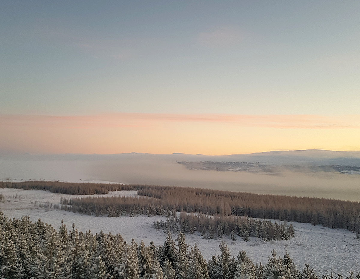 Að sögn Þorsteins hjá Veðurstofunni er von á að áfram verði kalt í veðri og því líkur á frostþoku á Egilsstöðum næstu daga.