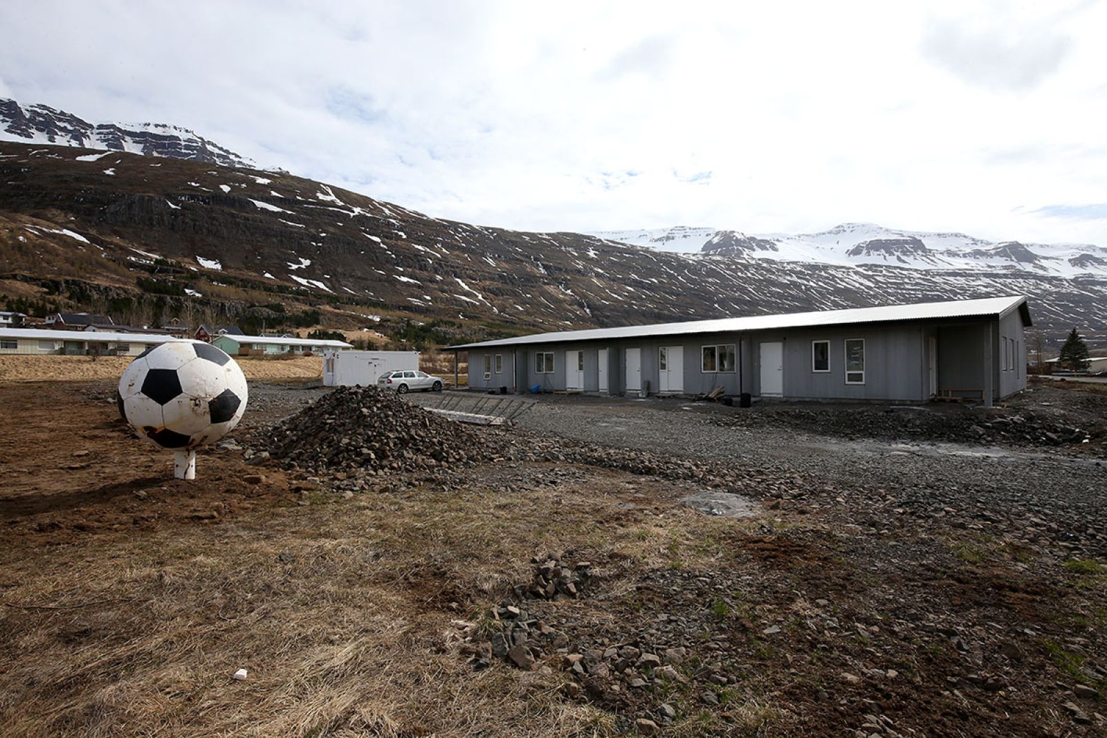 Magnús Baldur er sjálfur uppalinn Seyðfirðingur og hann viðurkennir að sérstakt sé að sjá gamla íþróttavöllinn tekinn undir aðra notkun. Stór fótbolti sem stóð við innganginn að vellinum er enn á sínum stað.