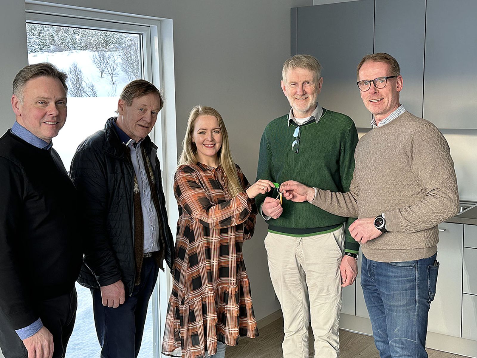 Frá afhendingu, frá vinstri: Jón Björn Hákonarson bæjarstjóri, Einar Skúli Hjartarson byggingastjórri, Hjördís Helga Seljan forseti bæjarstjórnar, Snorri Styrkársson formaður stjórnar Brákar og Ómar Guðmundsson framkvæmdastjóri Hrafnshóla. Myndir: Fjarðabyggð