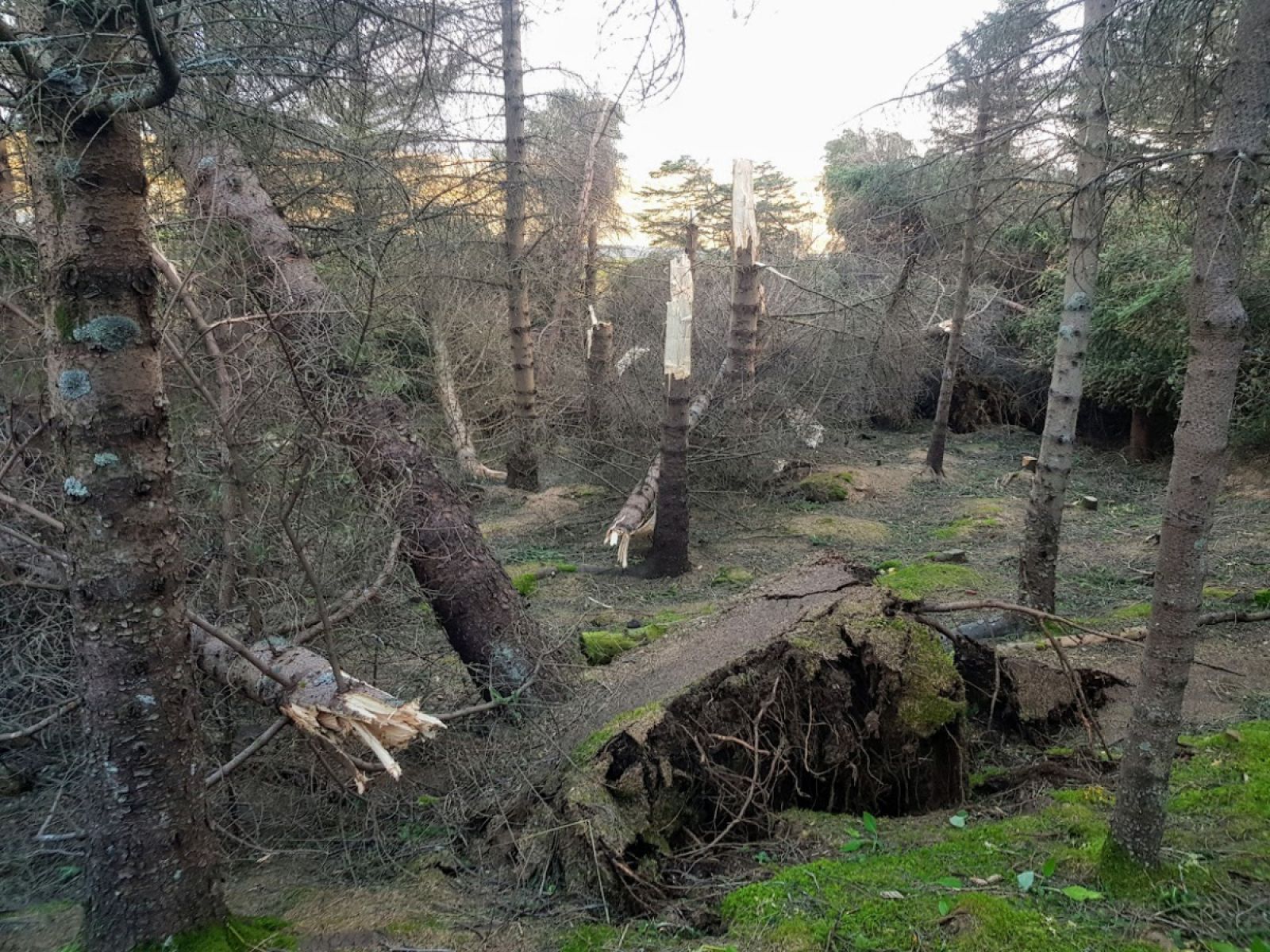 Ofsaveðrið um helgina eyðilagði mikið af því þrotlausa starfi sem sjálfboðaliðar skógræktarfélags Djúpavogs hafa unnið um 70 ára skeið í Hálsaskógi. Mynd Kristján Ingimarsson.