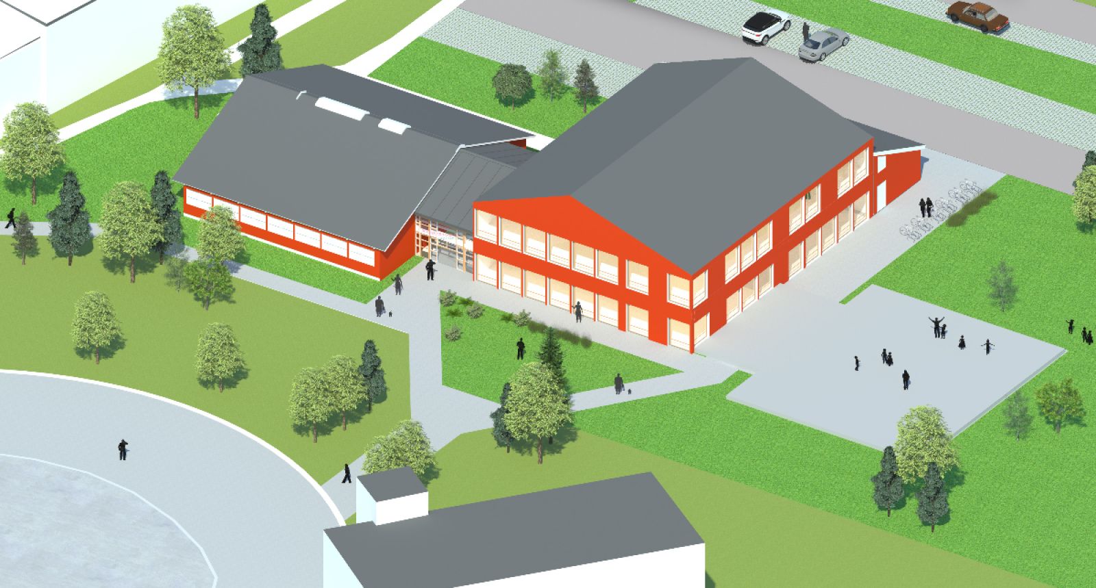Þrívíddarmynd af skólahúsnæðinu eftir stækkun en hér um grófhönnun að ræða og endanlegt útlit gæti tekið breytingum. Mynd Múlaþing