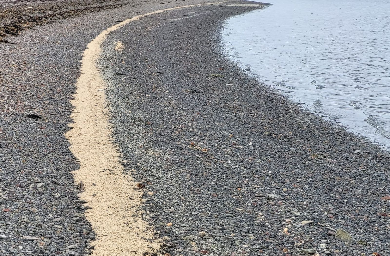 Grútur dreifðist víða um fjörur Eskifjarðar í maí en að þessu sinni tókst að koma í veg fyrir útbreiðslu. Mynd aðsend