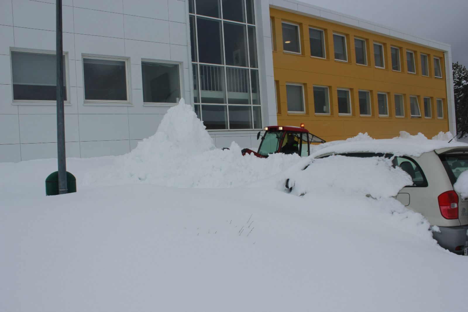 Á ferð í Neskaupstað fyrir tveimur vikum höfðu bæjarbúar orð á að snjómagnið minnti á gamla tíma þegar mun meira snjóaði reglulega í bænum en hin síðari ár. Svo mikið var magnið fyrir viku að heilu traktorarnir hurfu nánast í snjóinn. Mynd AE