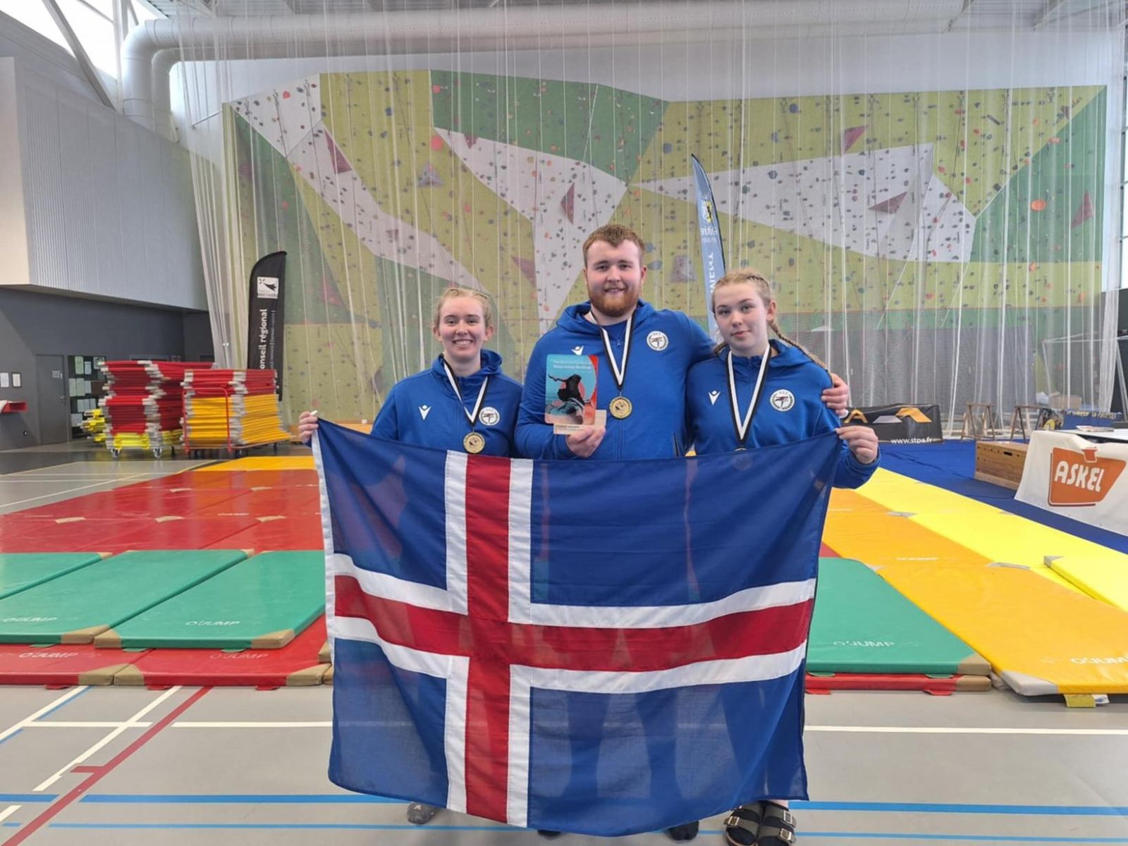 Kristín Embla, Hákon og Elín Eik á Evrópumótinu. Mynd: Glímusamband Íslands