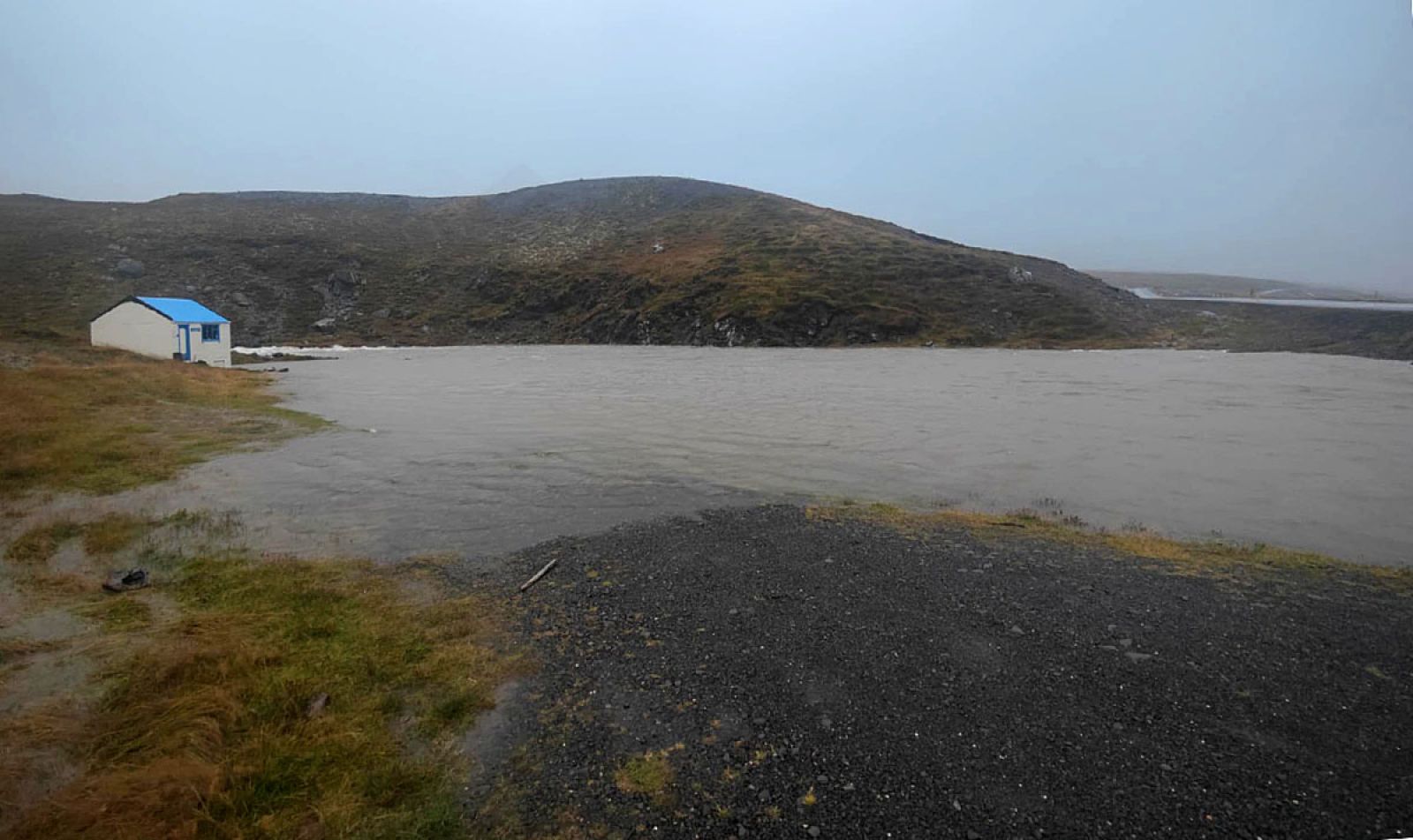 Allt á floti við Eyri á föstudagsmorgun. Mynd: Krummi