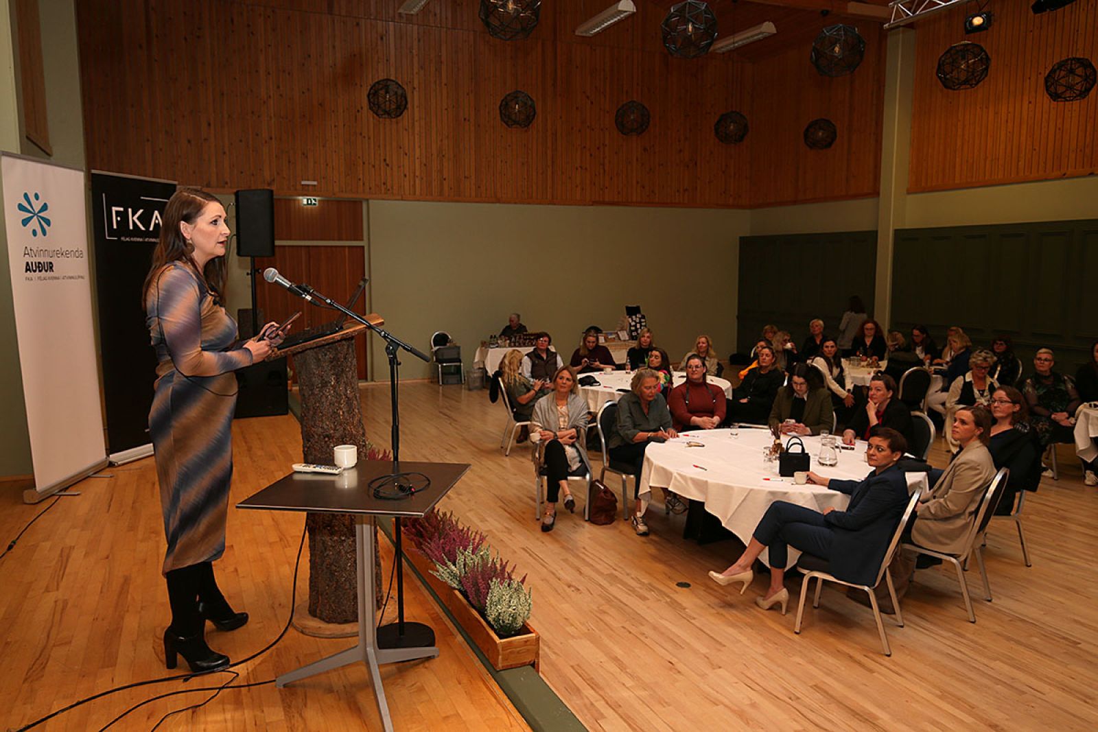 Heiða Ingimarsdóttir, formaður FKA Austurland og upplýsingafulltrúi Múlaþings, opnaði ráðstefnuna á að fara yfir sögu sína, frá því að vera einstæð móðir með tvö börn sem langaði að mennta sig yfir í að klára meistaragráðu frá erlendum háskóla. „Það er allt hægt þótt leiðin sé ekki sú sem maður ímyndaði sér,“ sagði hún.