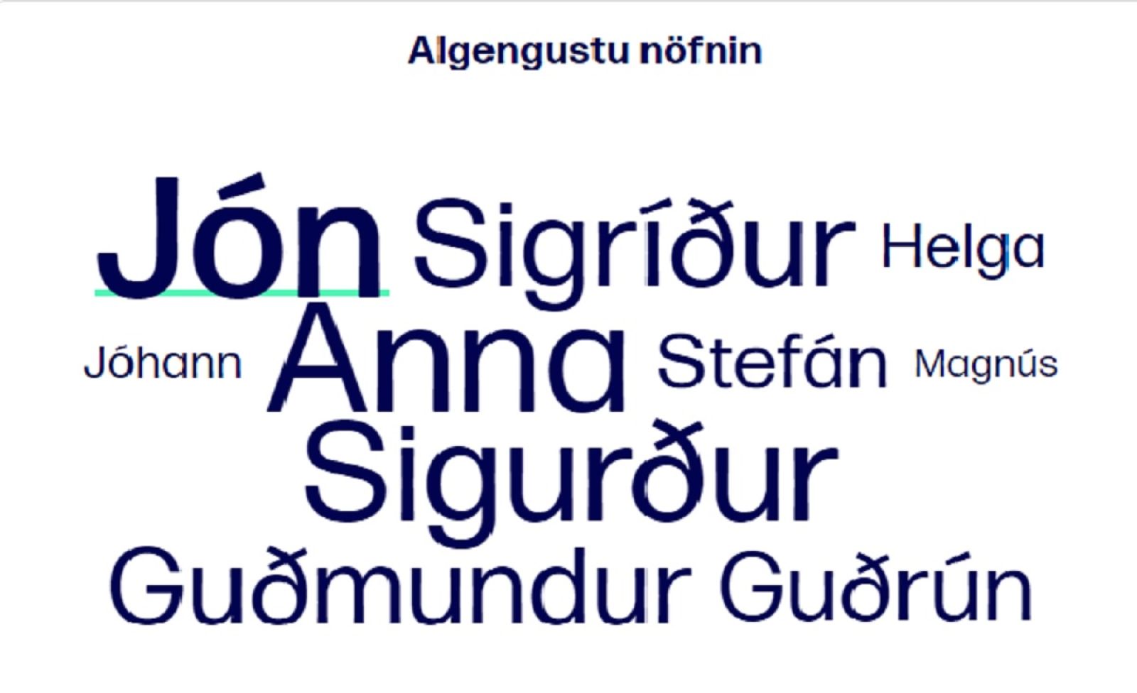 Önnur algengustu eiginnöfn kvenna á Austurlandi eru Guðrún, Jóhanna og Sigríður en líklegast er að rekast á karlmenn að nafni Sigurður, Guðmundur eða Stefán, að Jóni frátöldum.