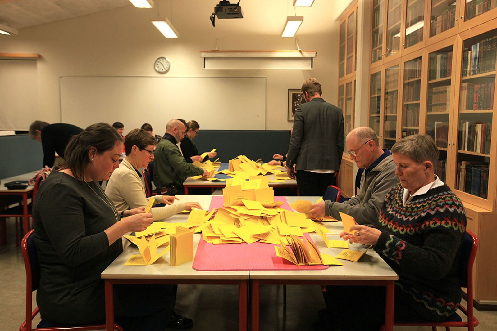 Beðið þar til öll atkvæði skila sér á talningarstað