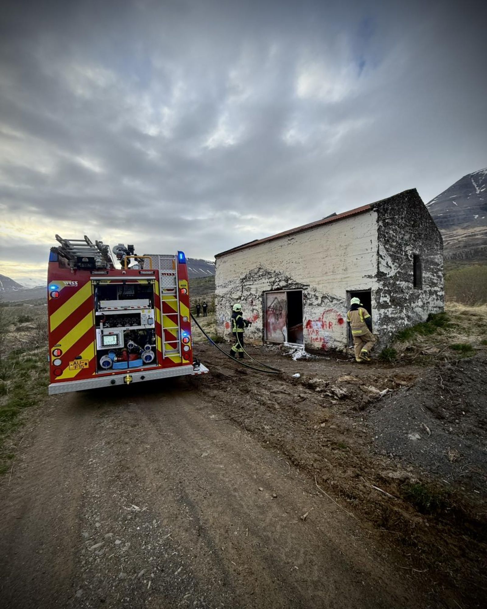 Samkvæmt fyrstu tilkynningu virtist um einbýlishús yst í þorpinu að ræða en fljótlega varð ljóst að eldurinn logaði í eyðibýlinu. Ekki mun vera nýtt að fólk sé þar að fikta með eld sem verði að báli.