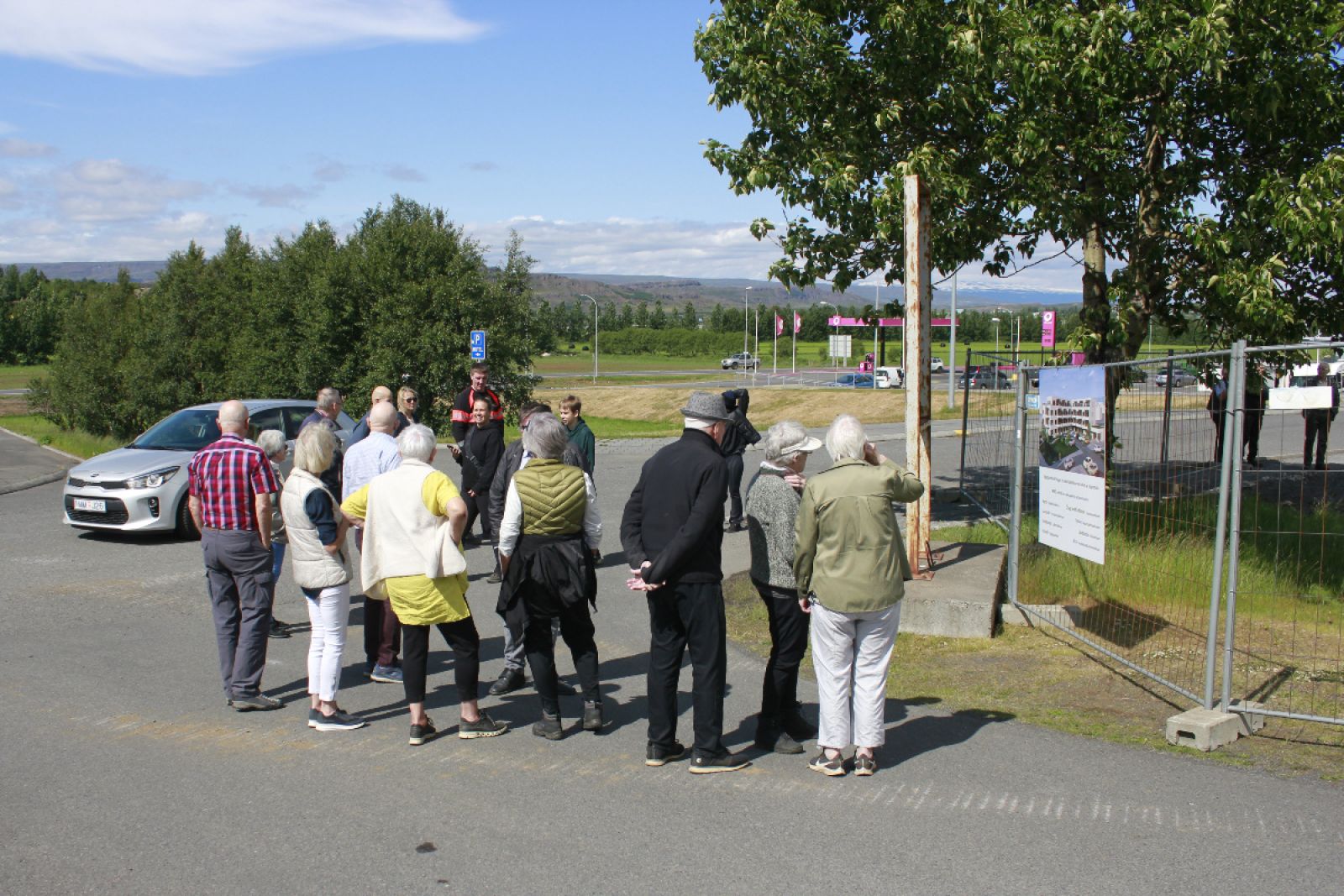 Mynd tekin þegar fyrsta skóflustungan að nýja fjölbýlishýsinu var grafin fyrr í sumar. Sá hluti götunnar sem loka þarf um tíma á næstunni er beint fyrir framan vinnusvæðið. Mynd AE