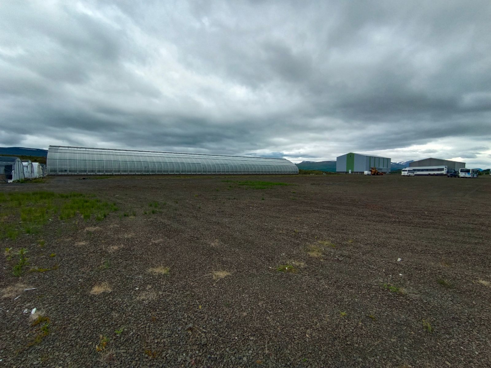 Eignirnar sem um ræðir í Fellabæ er stór og mikil skemma, skrifstofuhúsnæði og tvö stór gróðurhús. Mynd AE
