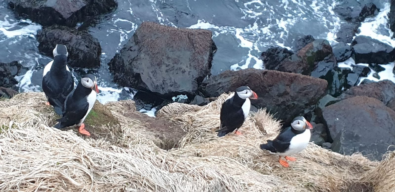 Lundinn lenti á Borgarfirði Eystra Í gærkvöldi. Hjónin Elísabet Ólafsdóttir og Björn Aðalsteinsson voru á rölti við Hólmann og náðu myndum af fuglunum.