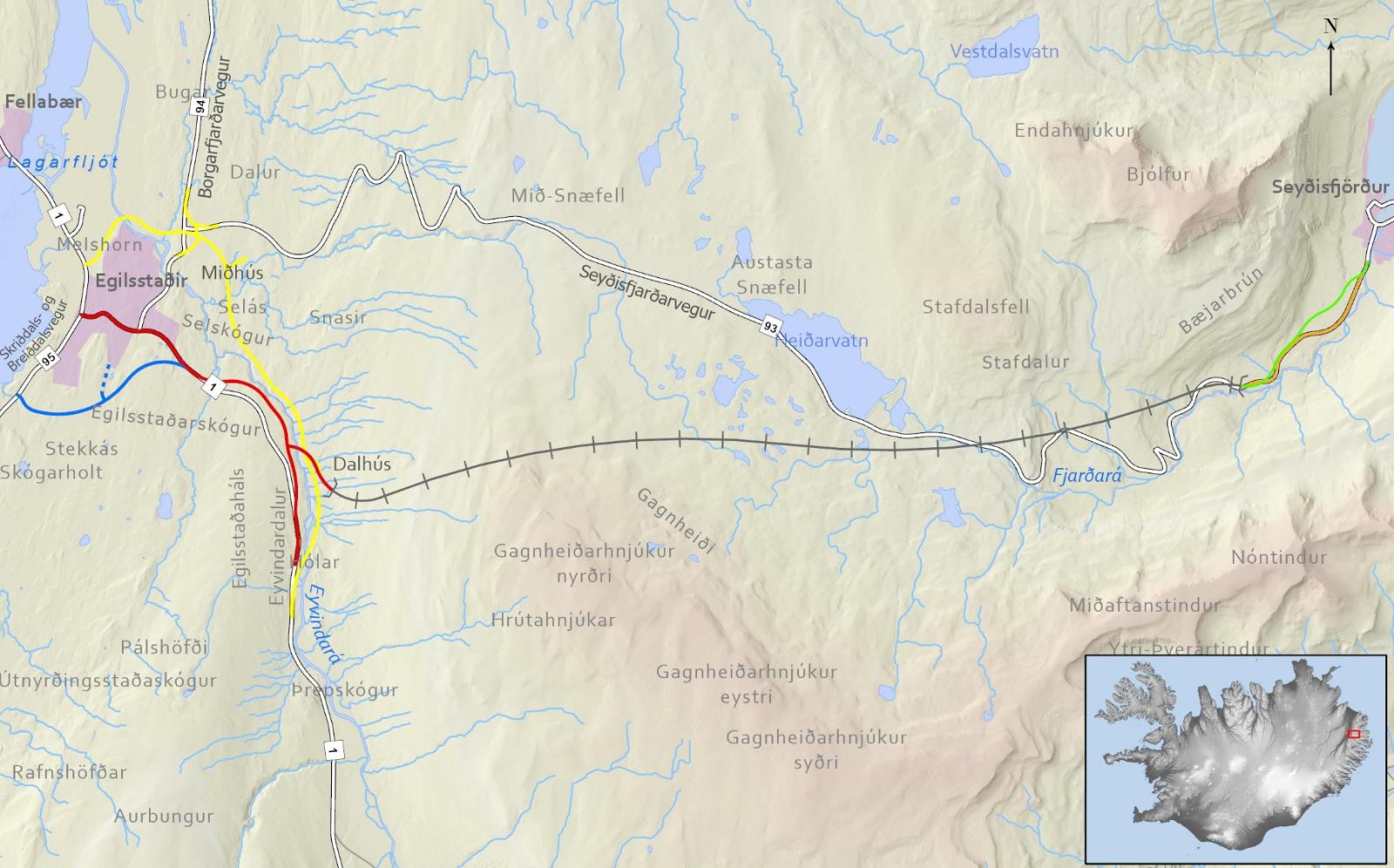 Fleiri þætti má lesa út úr skýrslunni. Til dæmis að mun fleiri landeigendur eru á Norðurleiðinni þar sem meðal annars er farið um land Steinholts, Miðhúsa og Eyvindarár til viðbótar við Dalhús og Egilsstaði auk lands í eigu Múlaþings í hinum leiðunum.