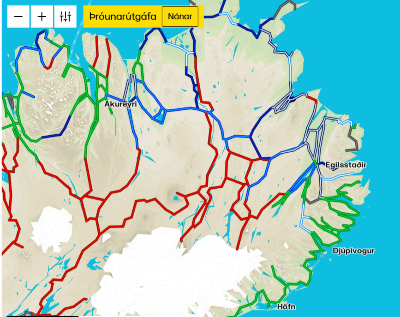 Skjáskot af nýjum upplýsingavef Vegagerðarinnar um færð á vegum landsins. Hann er sífellt uppfærður og þar fást allra nýjustu upplýsingar sé fólk á faraldsfæti um landið.