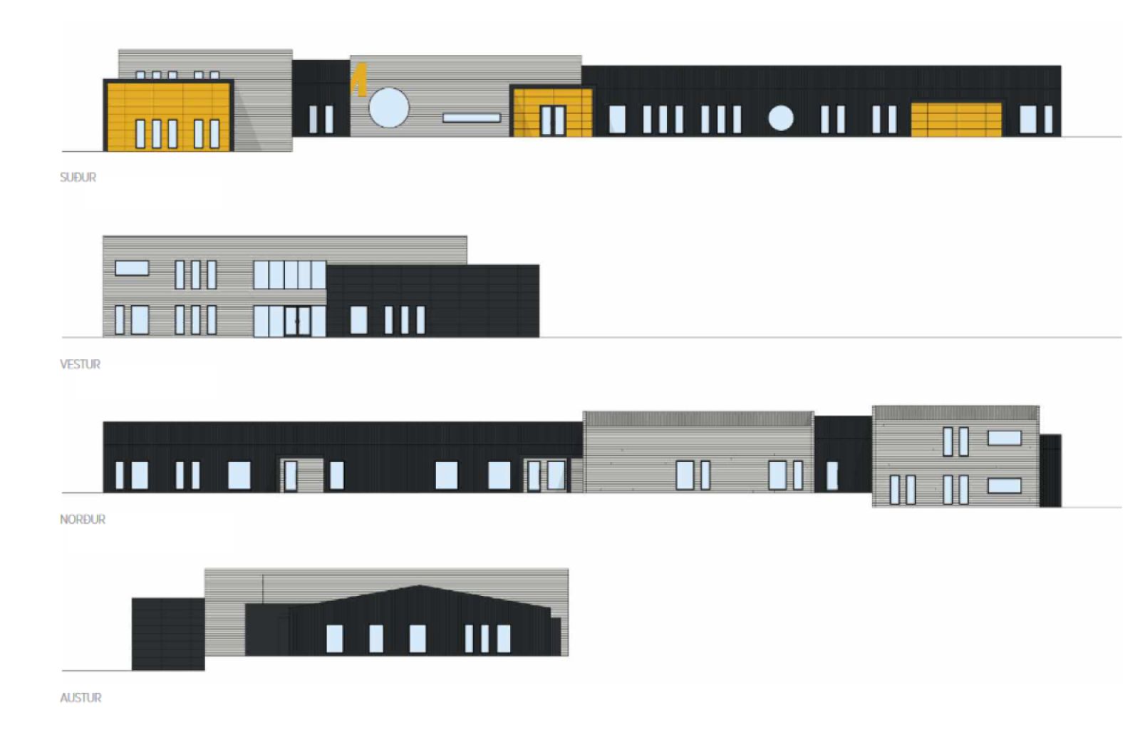 Teikningar af öllum hliðum Múlans að stækkun lokinni. Byggingartíminn rétt rúmt hálft ár gangi allt eftir.