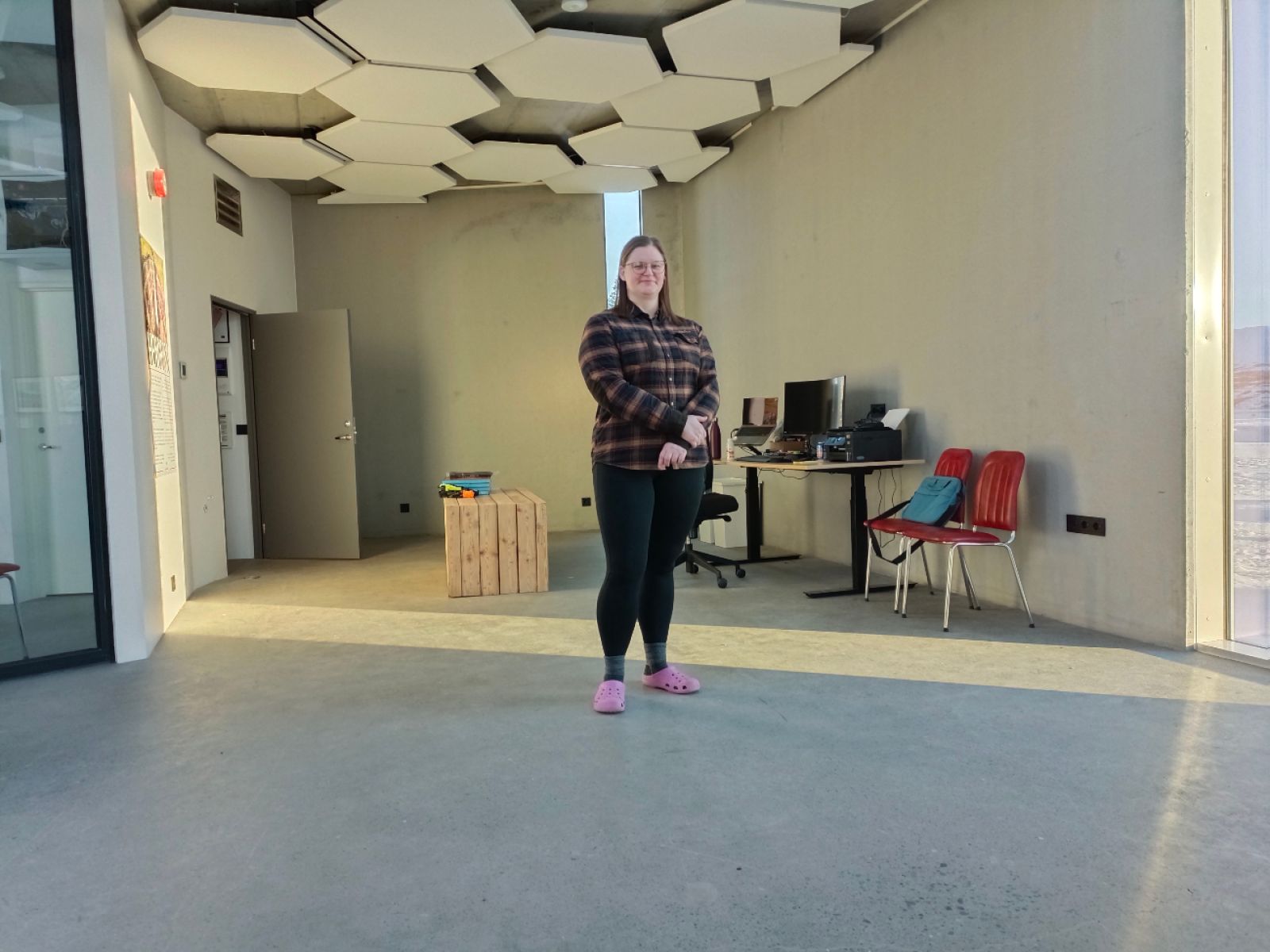 Forstöðumaður þjónustumiðstöðvarinnar við Hengifoss við rými það sem skal nýtt undir veitingasölu frá og með næsta sumri. Mynd AE