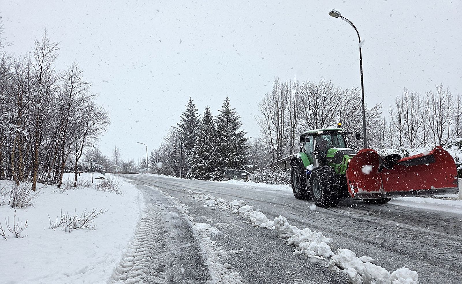 Krapi og snjóþekja er á flestum leiðum til og frá Egilsstöðum. Í þéttbýlinu er um 20 sentímetra þykkur, blautur snjór. Innan við Egilsstaði er þó almennt bara föl. Á Austfjörðum snjóaði einnig talsvert í gær en þann snjó hefur mikið til tekið upp, með hlýnandi veðri og rigningu.