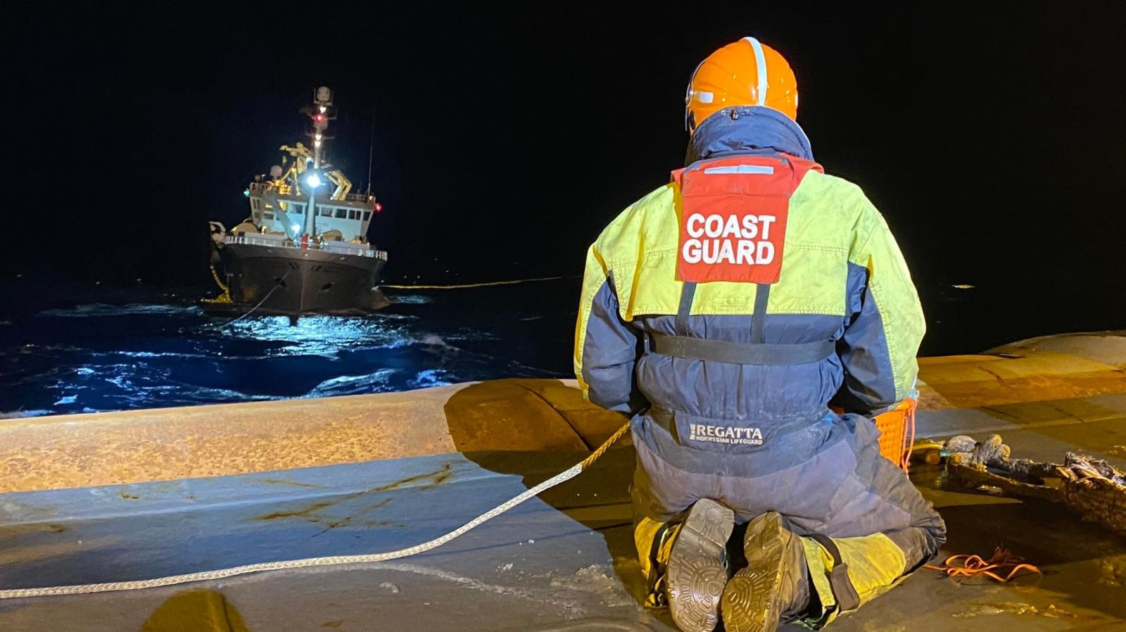 Á tíunda tímanum var línu skotið yfir í norska skipið og dráttartaug fest. Um miðnætti hafði áhöfn norska skipsins tekið nótina um borð og var þá haldið til Eskifjarðar.