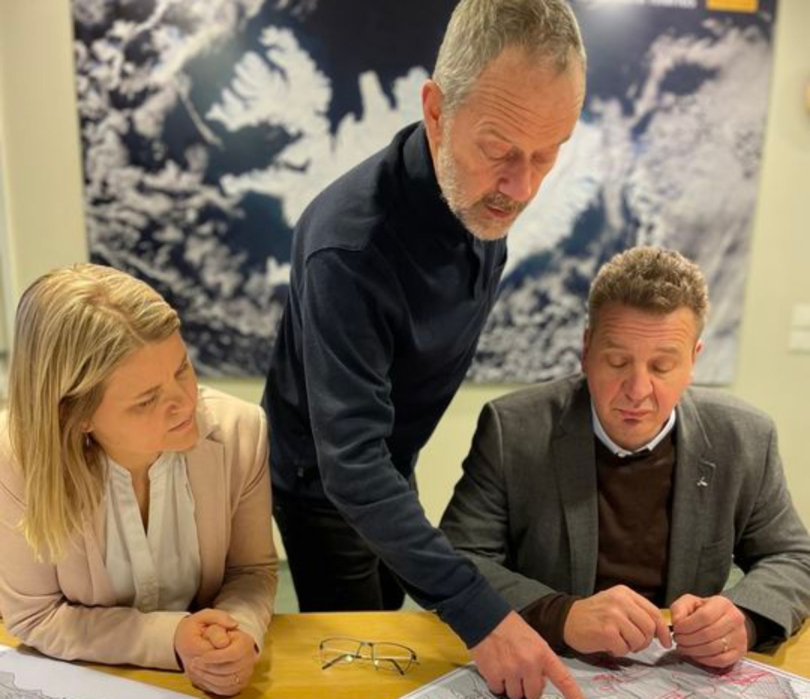 Kortin staðfest af ráðherra fyrr í dag en með honum á myndinni eru Hildigunnur H.H Thorsteinsson, forstjóri Veðurstofunnar, og Tómas Jóhannesson, ofanflóðafræðingur. Mynd Veðurstofa Íslands