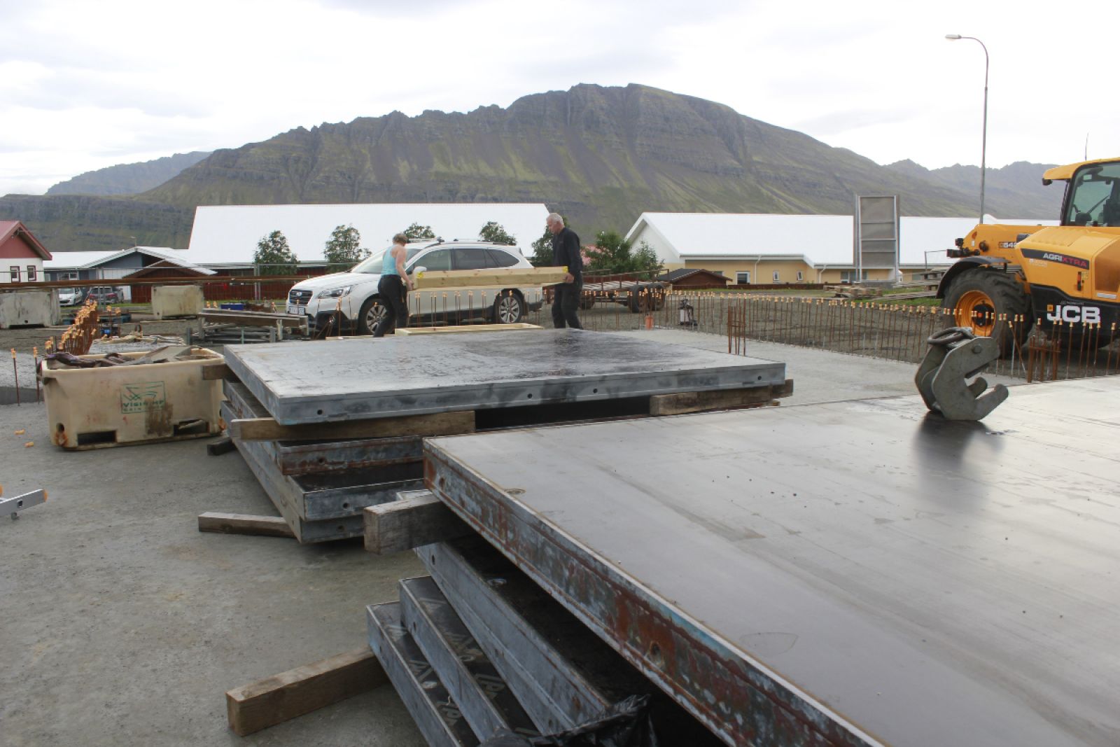 Ekki var leitað langt eftir byggingaraðilum heldur tók verktakafyrirtækið Nestak verkið að sér sem venju samkvæmt ganga rösklega til verka. Mynd AE
