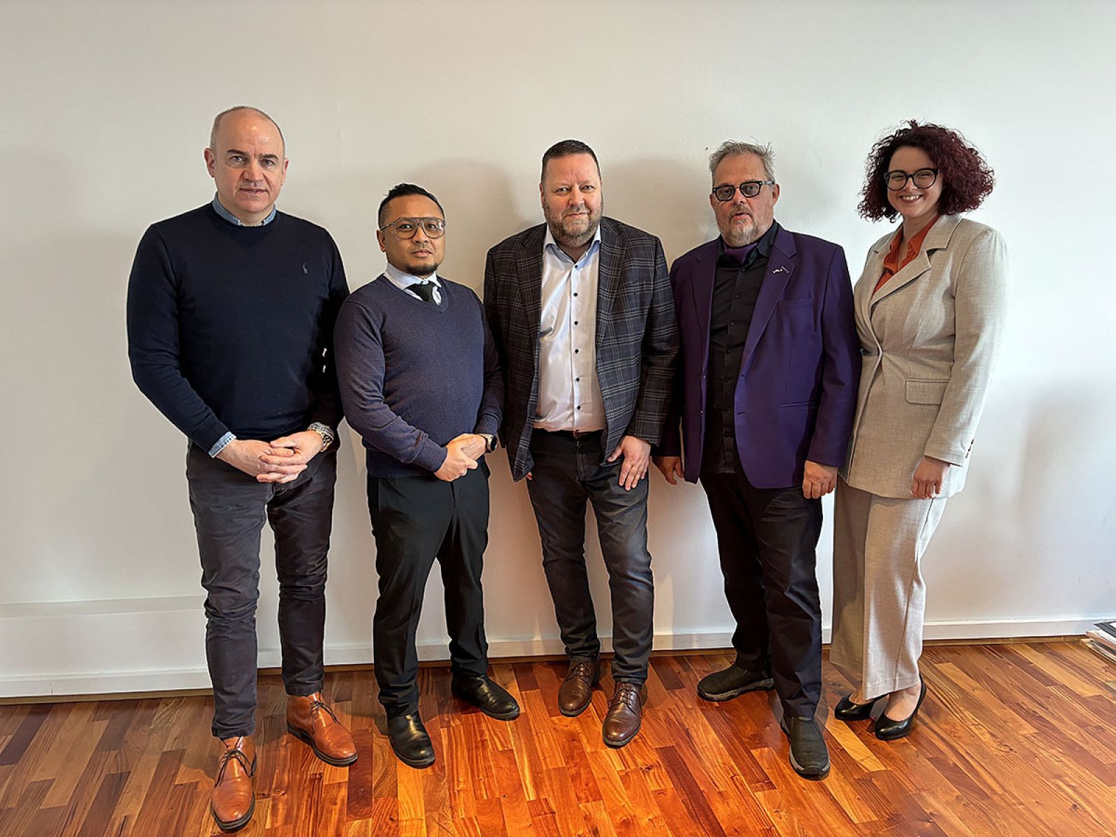 Gísla Steinar Gíslason, nýr eigandi, Davíð Kjartansson nýráðinn hótelstjóri, Jóhann Pétur Reyndal, nýr eigandi, Þráinn Lárusson fyrrum aðaleigandi og Heiðrún Ágústsdóttir fráfarandi hótelstjóri. Mynd: Aðsend