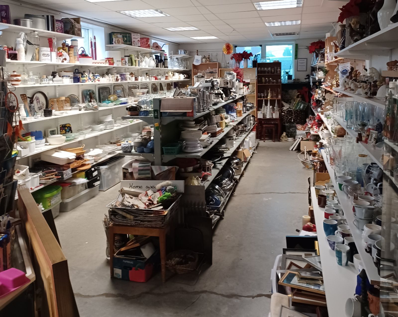 Meiri áhuga fólks fylgja þó vandamál og hefur þess vegna nytjamarkaðurinn glímt við plássleysi um hríð eins og sjá má á meðfylgjandi mynd sem Guðrún tók fyrr í dag. Allar hillur drekkhlaðnar og gólfplássið mjög takmarkað.