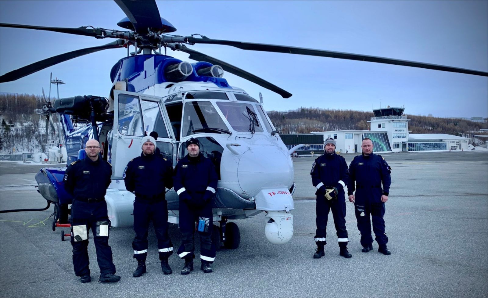 Þyrlusveit TF-GNÁ er til taks á Akureyri ef aðstoðar verður þörf á Austurlandi næstu sólarhringa. Mynd Landhelgisgæslan