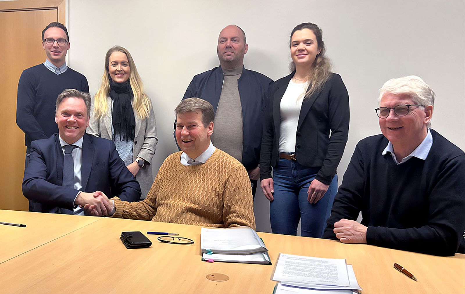 Frá undirritun samningsins í gær. Fremri röð frá vinstri: Jón Björn Hákonarson, bæjarstjóri Fjarðabyggðar, Magnús Bjarnason, stjórnarformaður Fjarðarorku og Jón Sveinsson, lögfræðingur Fjarðabyggðar. Aftari röð frá vinstri: Stefán Þór Eysteinsson, formaður bæjarráðs, Hjördís Helga Seljan Þóroddsdóttir, forseti bæjarstjórnar, Kristinn Þór Jónasson bæjarfulltrúi og Þuríður Lillý Sigurðardóttir bæjarfulltrúi. Mynd: Fjarðabyggð