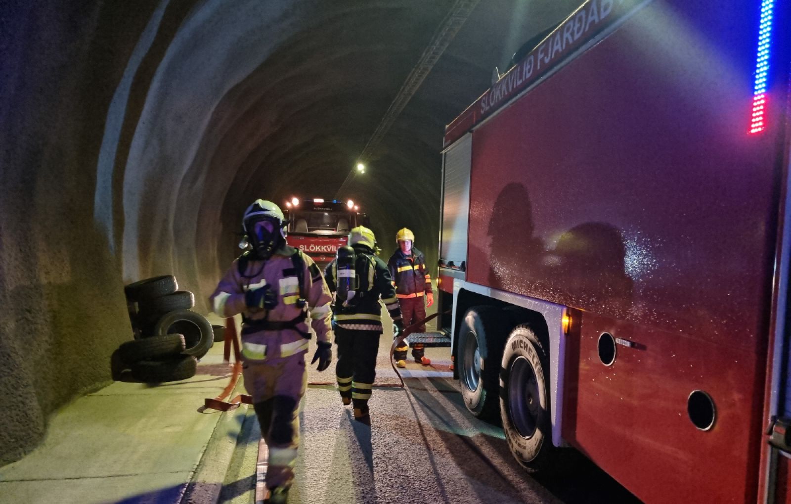 Fyrr í vetur fóru fram umfangsmiklar brunaæfingar í Norðfjarðar- og Fáskrúðsfjarðargöngum hjá slökkviliði Fjarðabyggðar í samvinnu við vegargerðina og aðra viðbragðsaðila. Þær gengu vel en vörpuðu ljósi á eitt og annað sem færa má til betri vegar.