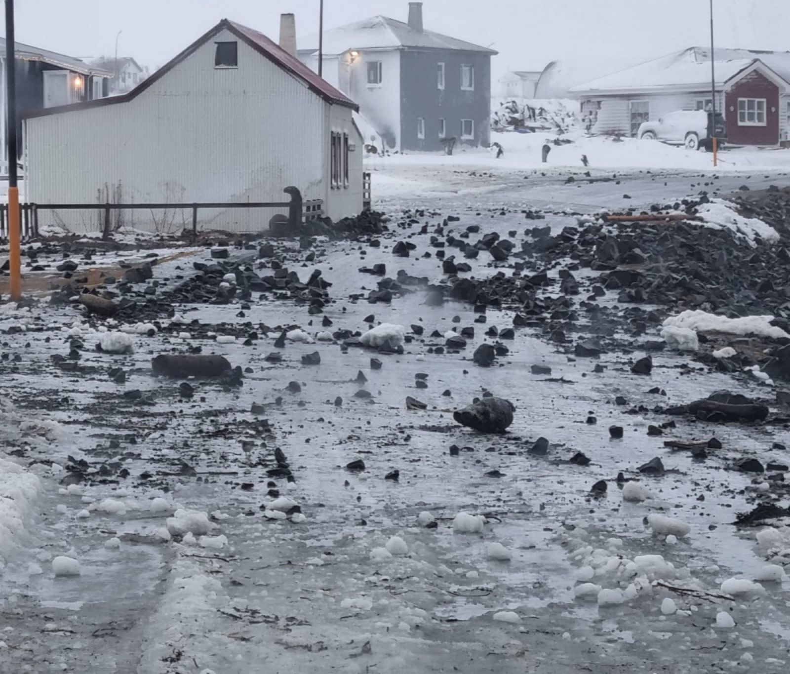 Veðurofsinn er slíkur í bænum að sjávarbrim hefur þeytt stórum hnullungum langt upp á vegi og í bátahöfninni velta fleyin um sem korktappar. Kári segir að mesta sprengjan í veðrinu hingað til hafi verið í hádeginu og staðan verið örlítið skárri eftir hádegið.