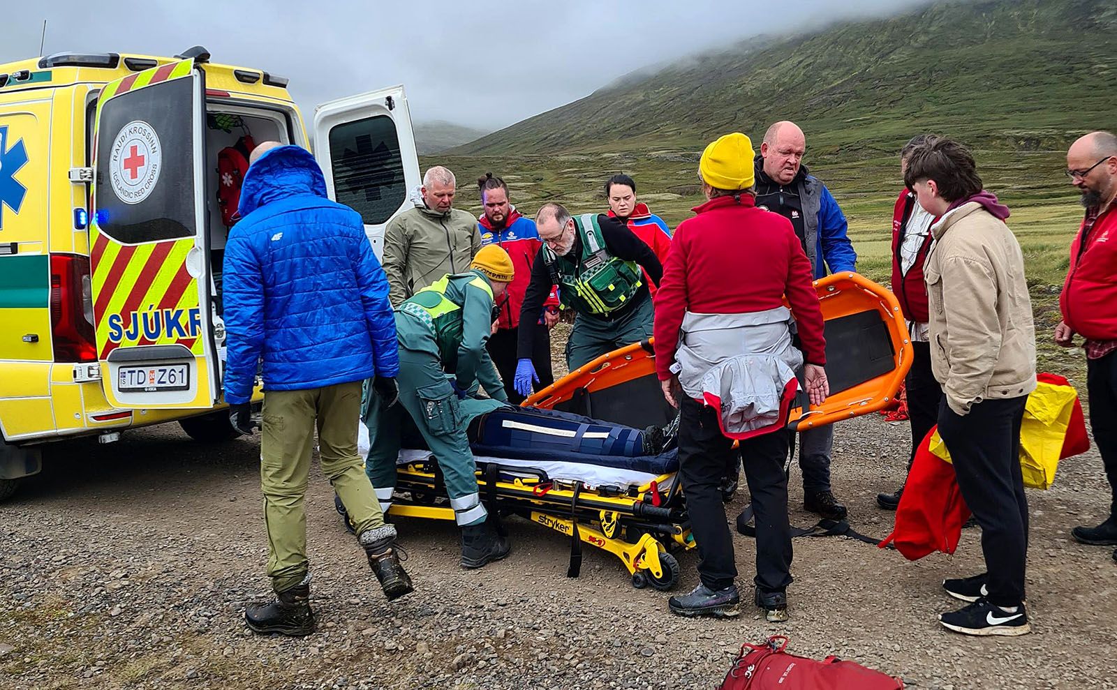 Björgunarsveitarfólk frá Sveinunga á Borgarfirði var komið á staðinn um hálftíma eftir að útkallið barst og göngumaðurinn kominn í sjúkrabíl frá Egilsstöðum um einum og hálfum tíma eftir símtalið.