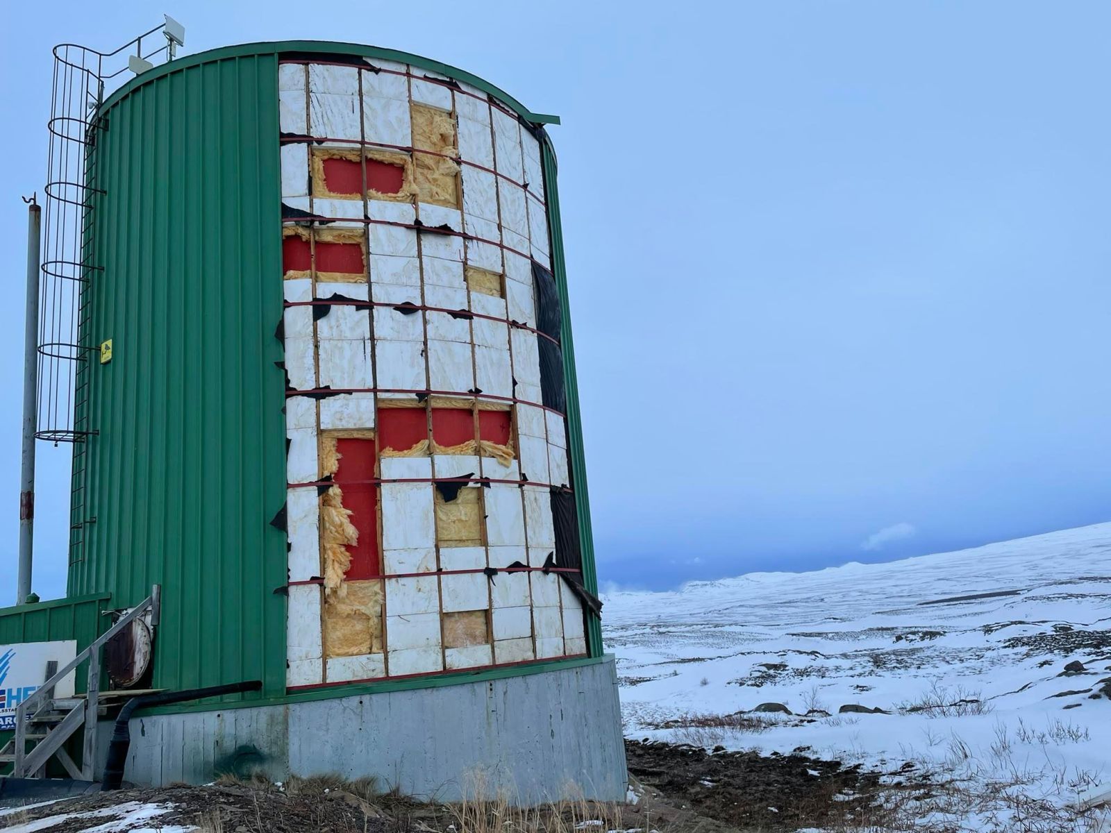 „Klæðningin fauk öll af tankinum en hann sjálfur stóð þetta af sér í þetta sinn,“ segir Aðalsteinn Þórhallsson, framkvæmdastjóri Hitaveitu Egilsstaða og Fella (HEF.)