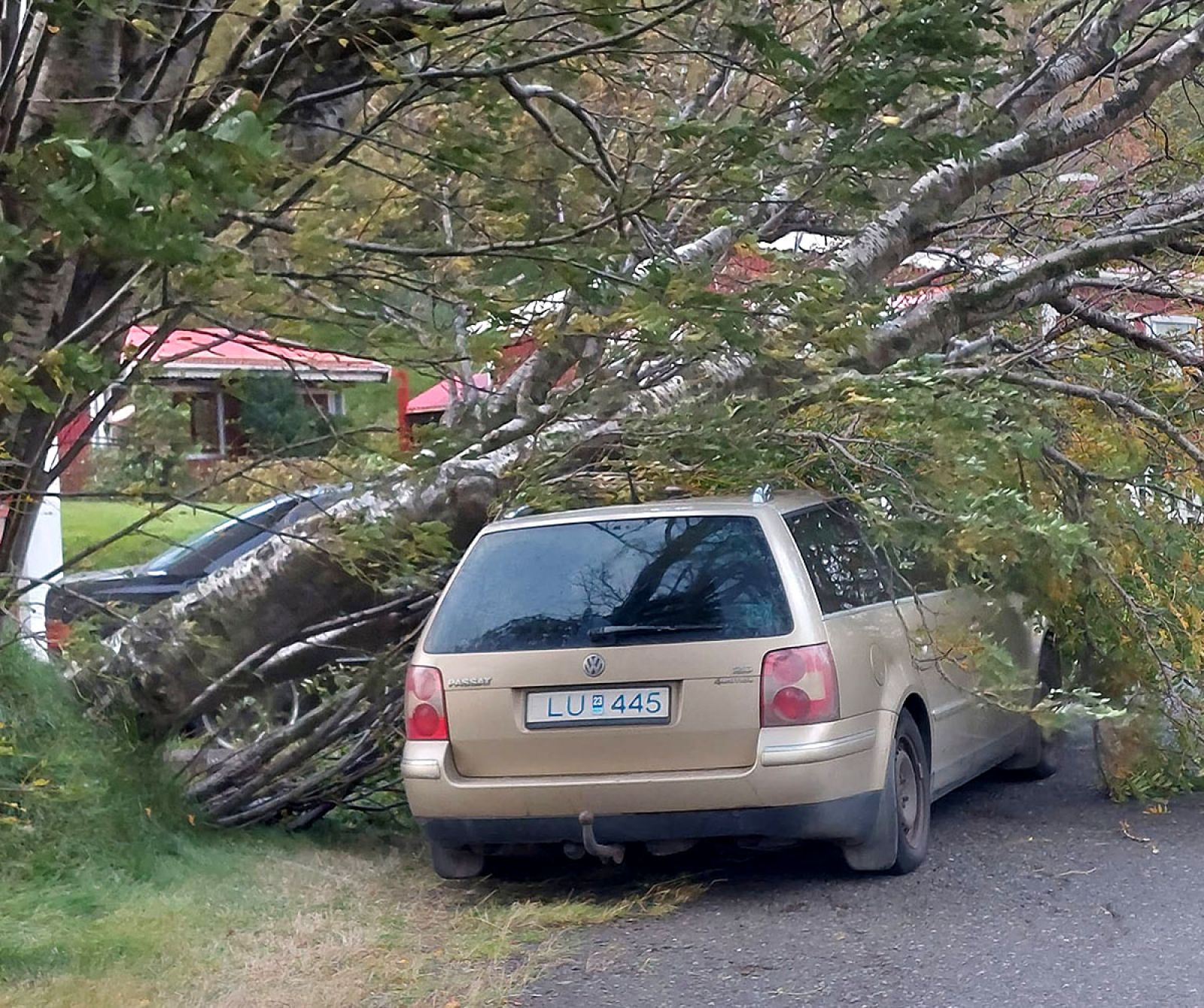 Gunnar segist af forvitni hafa farið hring í bænum upp úr hádegi í dag. Þá voru tré farin að rifna þar upp með rótum. „Þetta eru stóreflistré hingað og þangað um bæinn. Á mörkum lóðarinnar hjá mér og nágrannanum er 40-50 ára gömul ösp, um 15 metra há, bol- og krónumikil, mjög falleg. Hún er komin á hliðina, upp að húsi nágrannans. Það er mjög sorglegt að sjá þetta en það er ekkert hægt að gera.