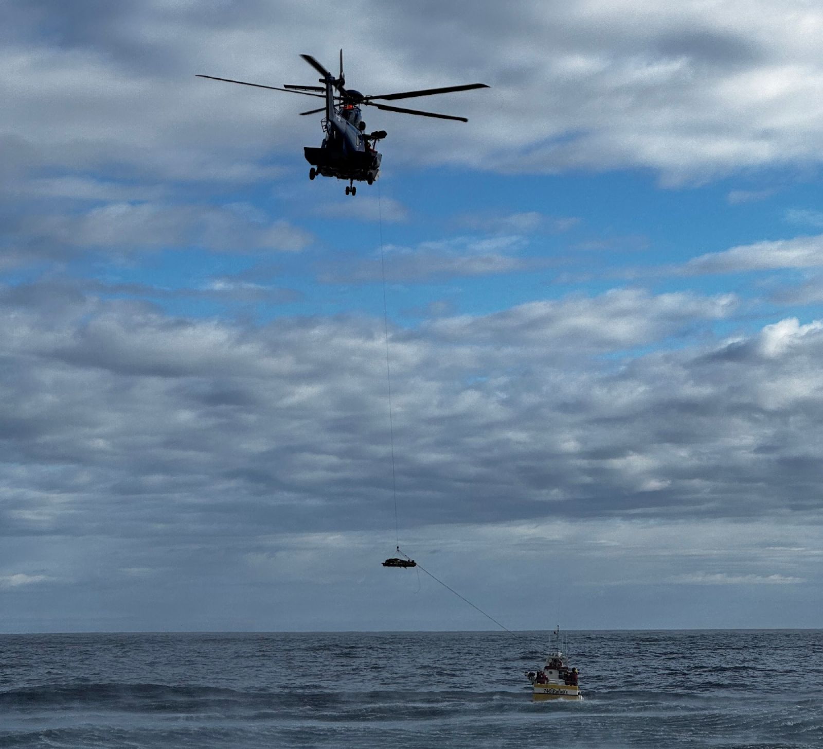 Þyrlan að hífa manninn um borð í morgun en þaðan var flogið með hann á sjúkrahús í Reykjavík. Mynd Landsbjörg