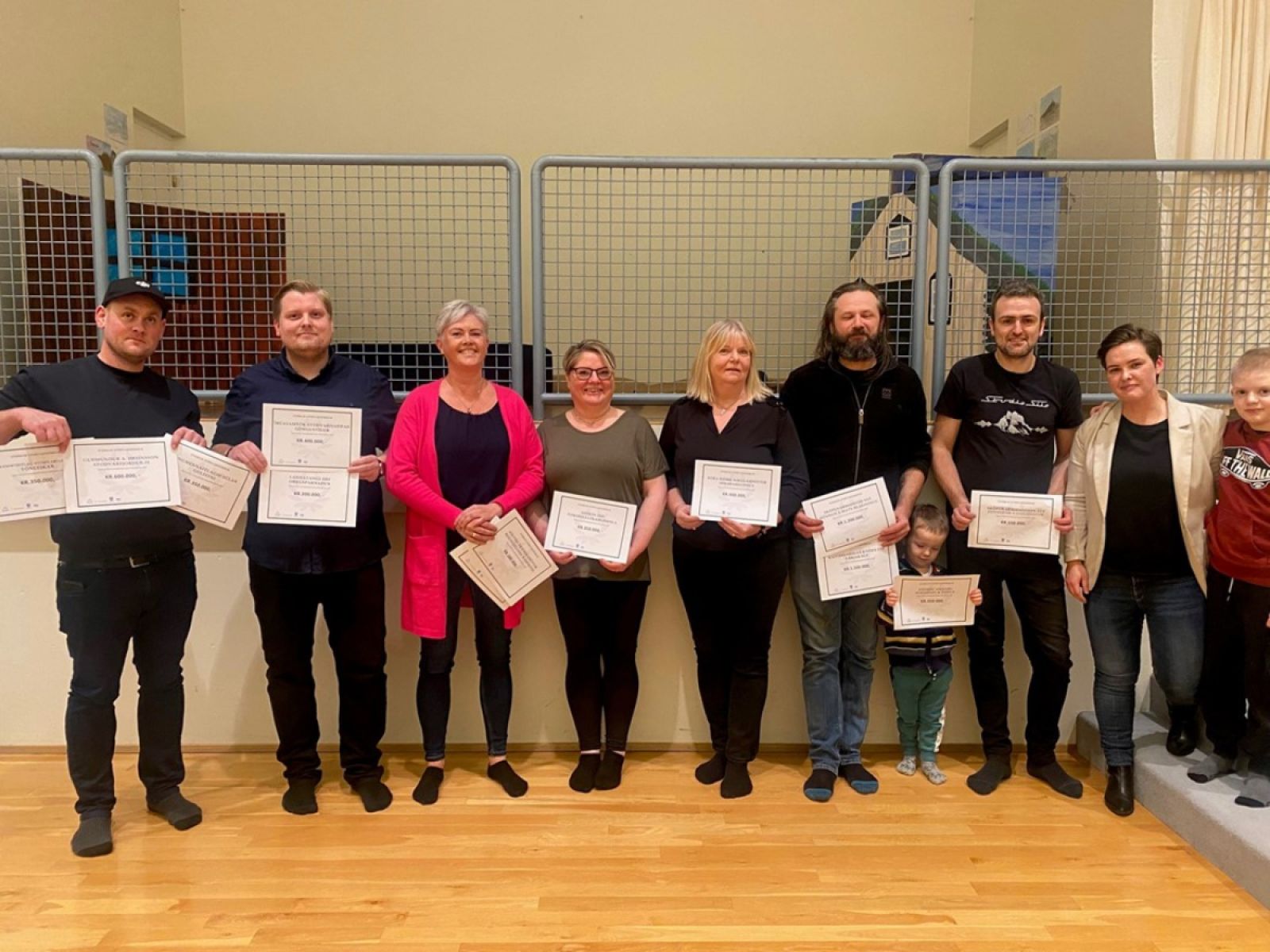 Hluti styrkþega ánægðir að athöfninni lokinni. Mynd Fjarðabyggð