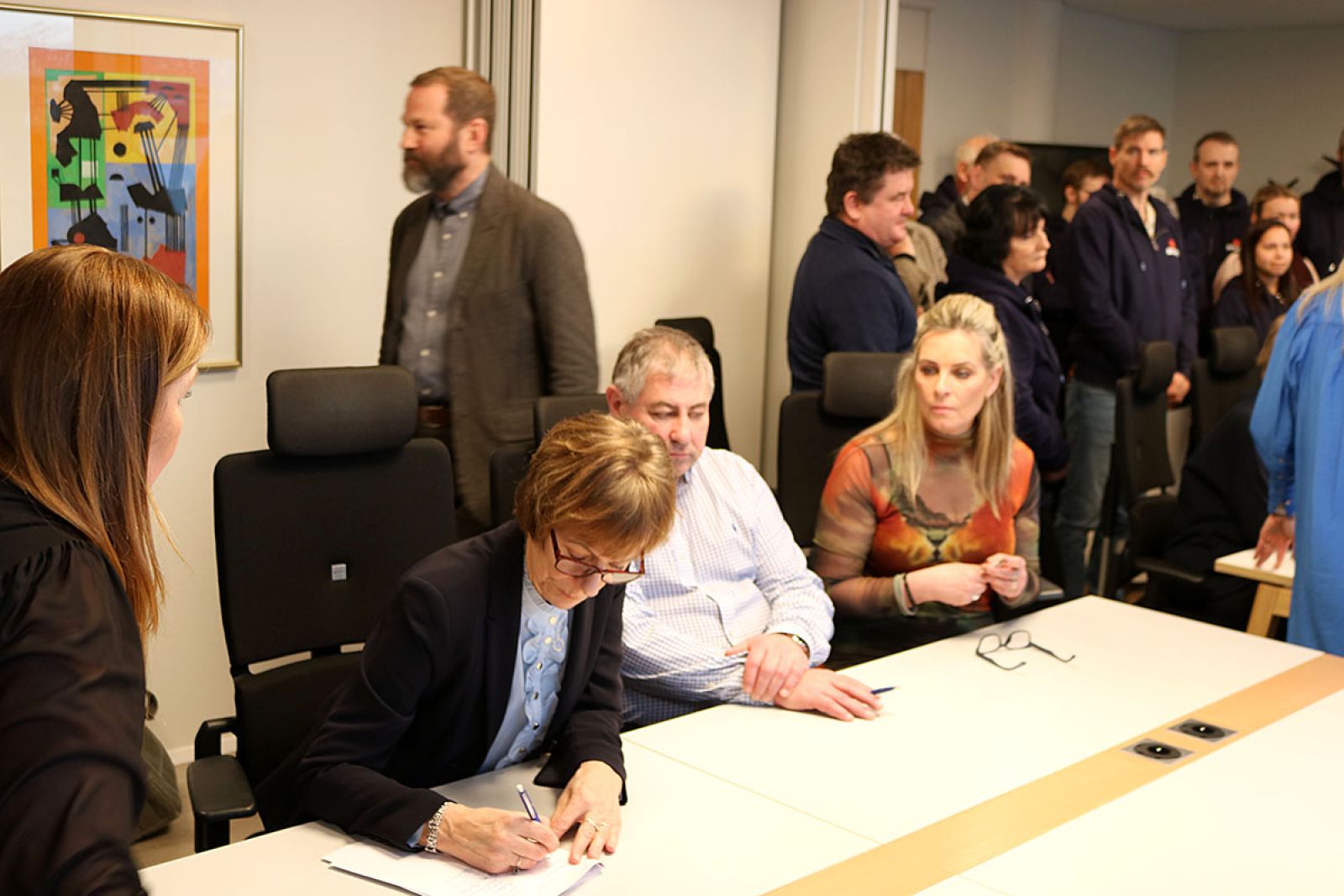 Frá undirritun kjarasamninga í vetur. Mynd: ASÍ
