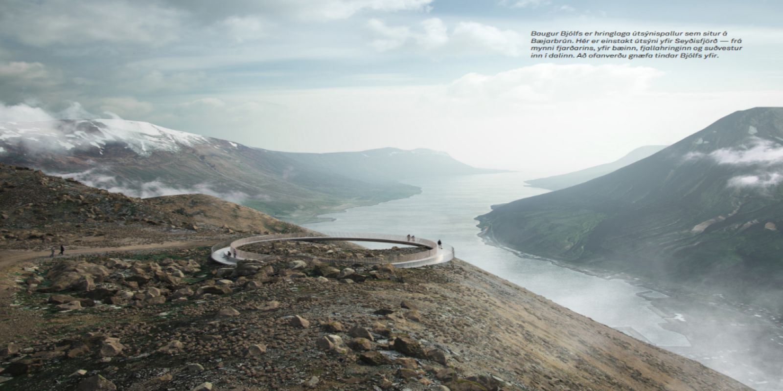 Á þriðjudaginn kemur verður hönnuðum útsýnispallsins Baugs Bjólfs sem reisa skal á Bjólfi við snjóflóðavarnargarðana fyrir ofan Seyðisfjörð loks veitt verðlaun sín fyrir verkið en samkeppni var á síðasta ári um bestu tillöguna. Aldrei tókst þó að halda formlega athöfn þegar vinningstillagan var kynnt en úr því skal bætt í næstu viku.