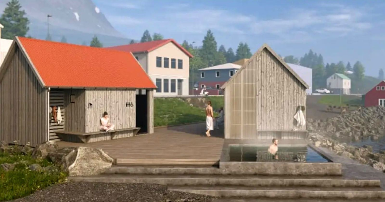 Ólafía Zoéga er arkitekt í Björgvin í Noregi og uppalin í Neskaupstað. Hún hefur útfært fyrir hópinn hugmyndir um aðstöðu sem yrði bæði fyrir sjósundsfólks og kajakræðara.