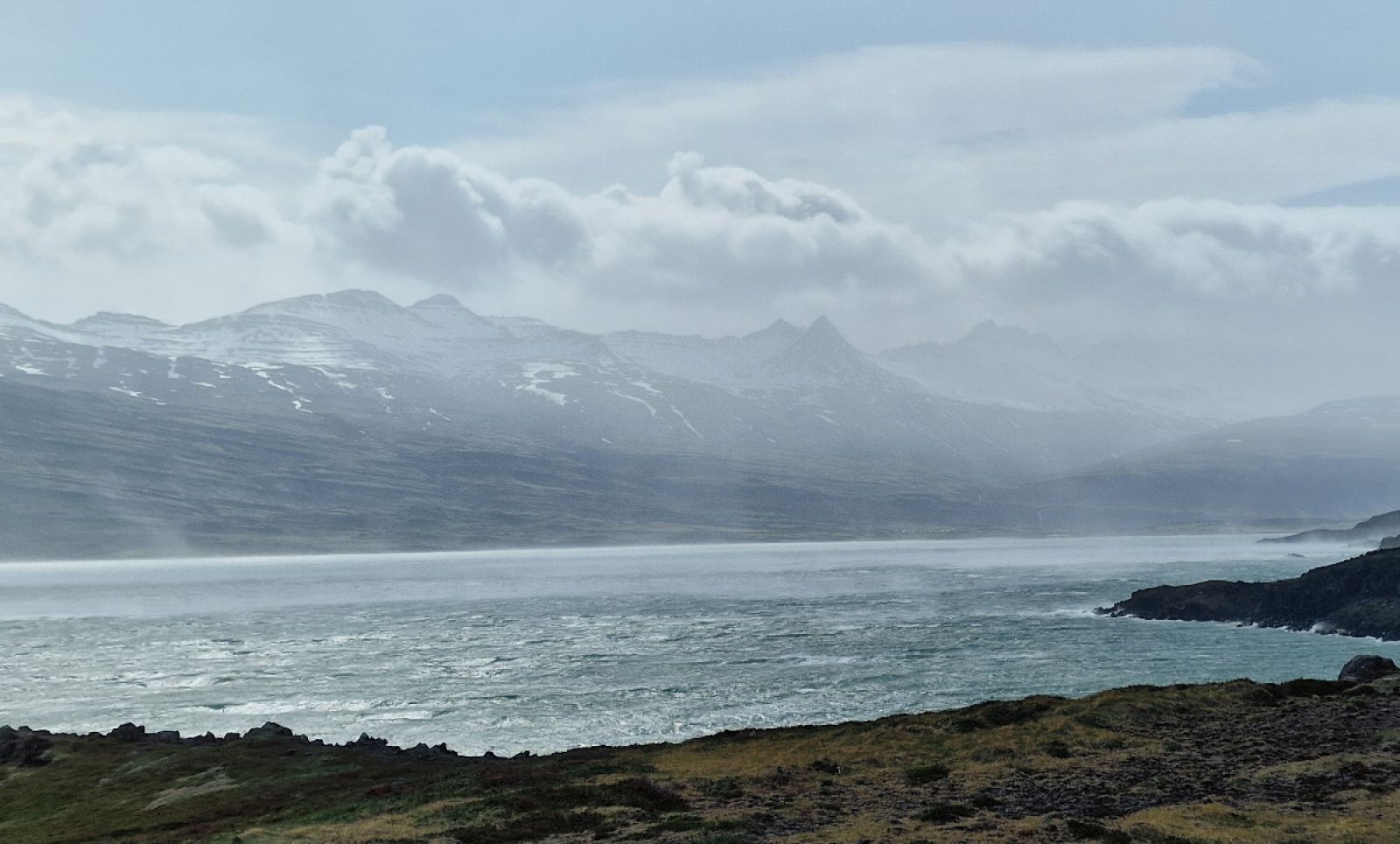 Mynd sem Eiður smellti af þegar vindur stóð sem hæst í Hamarsfirði í gærdag. Hvergi á láglendi mældist vindstyrkurinn jafn mikill á Austurlandi í fyrrinótt.
