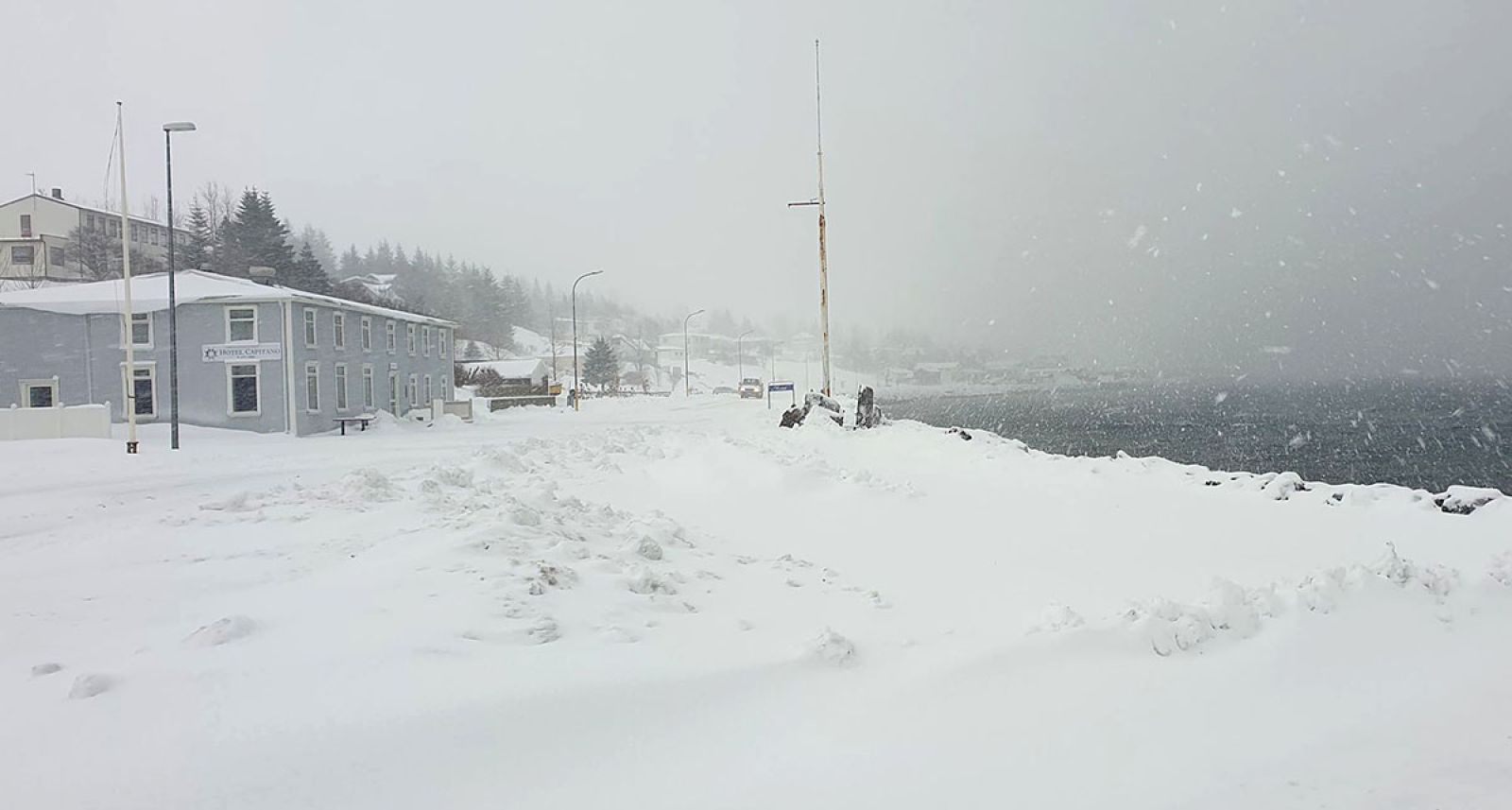 Vegurinn yfir Fagradal var opnaður seinni partinn í dag en á honum er óvissustig vegna snjóflóðahættu. Aðrir fjallvegir eru flestir ófærir og ýmist ófært eða þæfingur á Héraði. Þar er líka víða mjög blint í kófi. Austfirðingar hafa verið hvattir til að vera ekki á ferð að óþörfu.