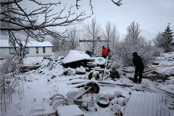 Starfsmenn áhaldahúss Stöðvarfjarðar með góðri hjálp annarra starfsmanna Fjarðabyggðar hafa síðustu fjóra sólarhringa unnið linnulítið að hreinsun þorpsins eftir óveðrið í síðustu viku og nú sér nokkuð fyrir endann á því verkefni að sögn verkstjóra. Umfang tjóns er þó líkast til meira en fyrst var haldið.