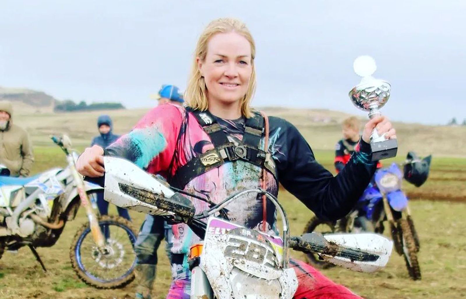 Óli var að labba með bensínbrúsann í áttina til mín en ég var svo spennt og tryllt yfir því að vera orðin fremst að ég leit á bensíntankinn á hjólinu og hugsaði með mér: Ég kemst lokahringinn, og æddi af stað. En auðvitað endaði ég bensínlaus. Það var hræðilega niðurlægjandi, mér var skutlað til baka á fjórhjóli og Óli hélt að ég væri stórslösuð þegar var komið með mig. En það var bara stoltið sem var sært. En ég lærði af reynslunni og hef aldrei síðar orðið bensínlaus.“